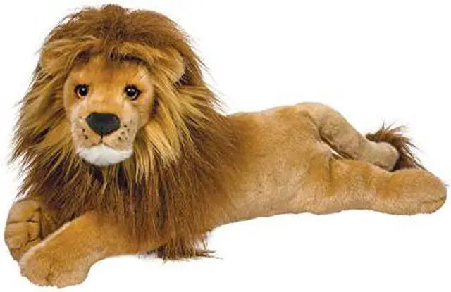 With his noble bearing and stately appearance, Zeus the Lion stuffed animal is a jungle king with widespread appeal! Part of our distinctive DLux collection, Zeus features soft plush materials of the highest quality. His reclining pose is ideal for lying in your lap or stretching out across your bed. Springy, resilient polyester fiber and weighted paws add to his cuddly feel and make Zeus the ultimate companion when it's time to curl up and snuggle. A majestic two-toned mane and bright, golden eyes lend Zeus a lifelike look that will capture the hearts of animal lovers of all ages.