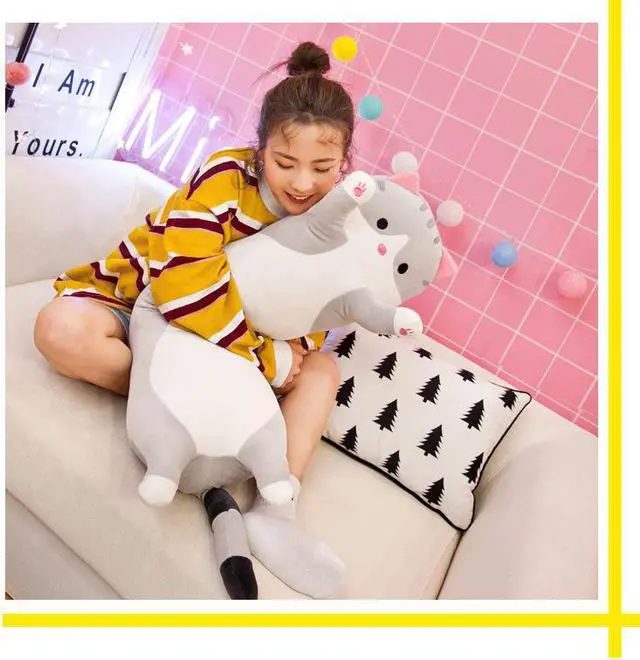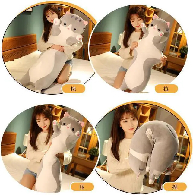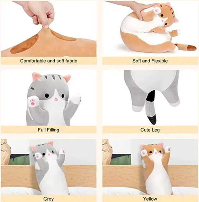 Multi-Functional Body Pillow: The cat plush is made of high-quality material soft, the giant stuffed animal cat pillow is suitable for bedroom, living room, home, office, sofa and any other places you want. This is not only a plush toy, but also human pillows, neck pillows, waist pillows and car pillow, as well as things you can hug it at any time, to provide you with the most comfortable sleeping pillow, so that it can improve sleep.