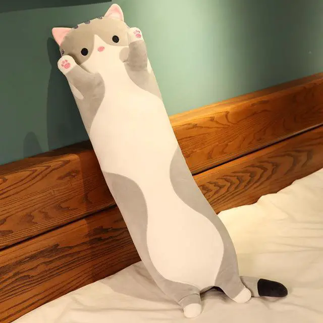 Widely Used: This plush cat pillow is suitable for bedroom, living room, home, car, office, This long cat pillow with fine workmanship and beautiful design looks real, soft, easy to clean, firm decoration, high safety, suitable for a wide range of people. It can be used not only as a leisure cute soft stuffed animals plush toy, but also as a pillow to help you relieve fatigue.