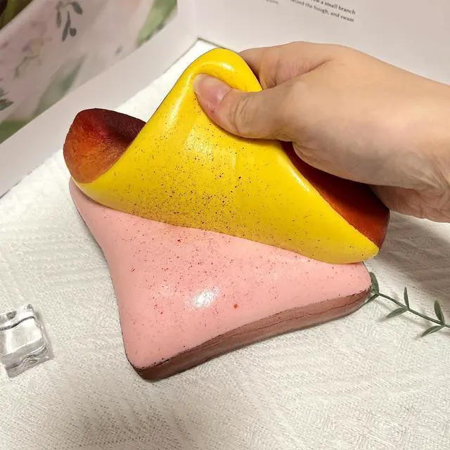 This slow-rising squishy toy is not food. Do not tear it apart. Keep away from children and pets to prevent accidental ingestion.