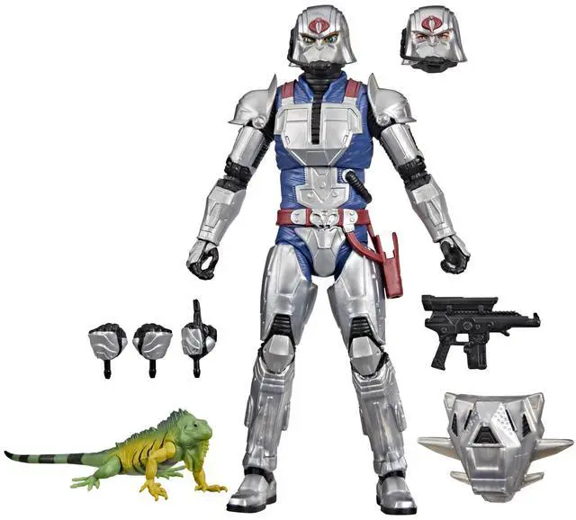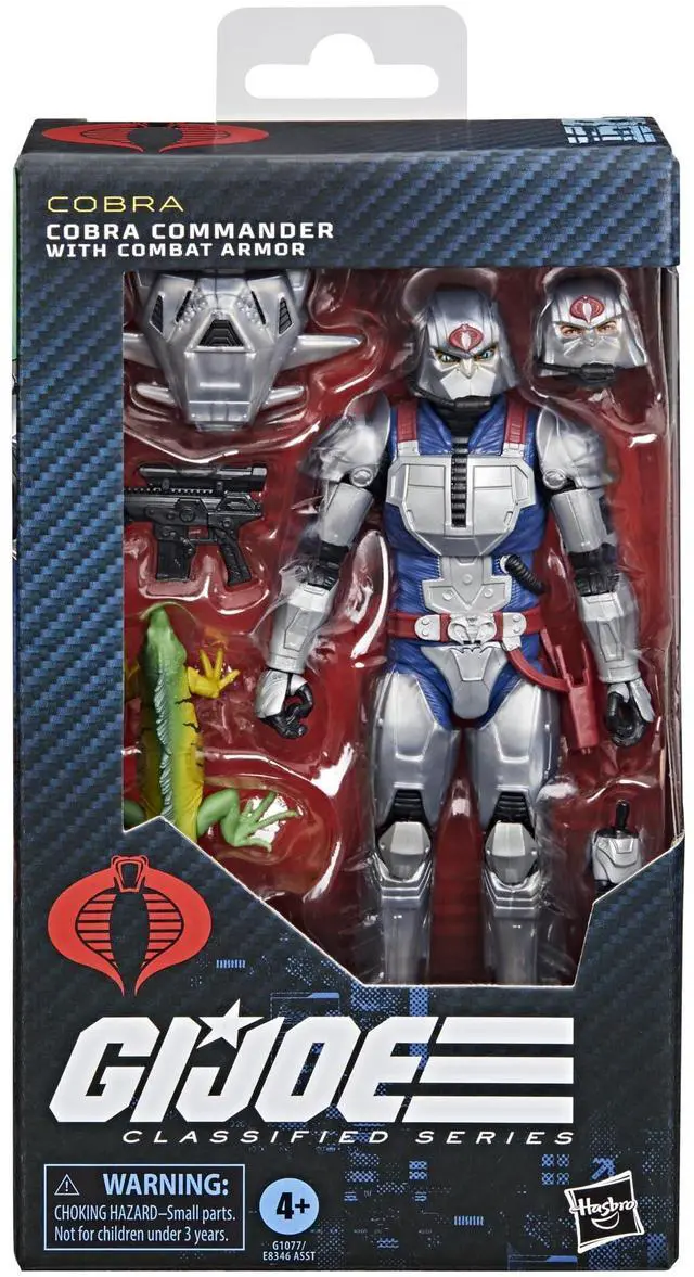 G. I. Joe is a highly skilled, on-demand, special operations force of men and women from around the globe tasked with defending the world from Cobra, a ruthless criminal organization bent on total domination. Wherever theres trouble, G. I. Joe is there. New to the G. I. Joe Classified Series line, Cobra Commander With Combat Armor comes ready for adventure, with multiple points of articulation for high poseability. This Cobra Commander With Combat Armor figure contains 7 character-inspired accessory pieces including an alternate head to switch between human and serpent, 3 alternate hands, backpack, pet iguana "Serpentor, " and weapon accessory.