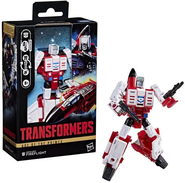 Experience the epic universe of Transformers robots with the Transformers Aerialbot Fireflight toy! The 5.5 -inch (14 cm) figure converts from robot action figure to jet mode in 17 steps. Combine the Aerialbot Fireflight figure with other Transformers Aerialbot action figures (each sold separately, subject to availability) to create the Aerialbot Superion action figure! With intricate poseability and attachable blaster accessories, this Aerialbot Fireflight action figure makes an awesome addition to any collection. Look for more Transformers collectible toys (sold separately, subject to availability) featuring favorite characters like Optimus Prime, Bumblebee, Megatron, and more to create a lineup that is - More Than Meets the Eye.