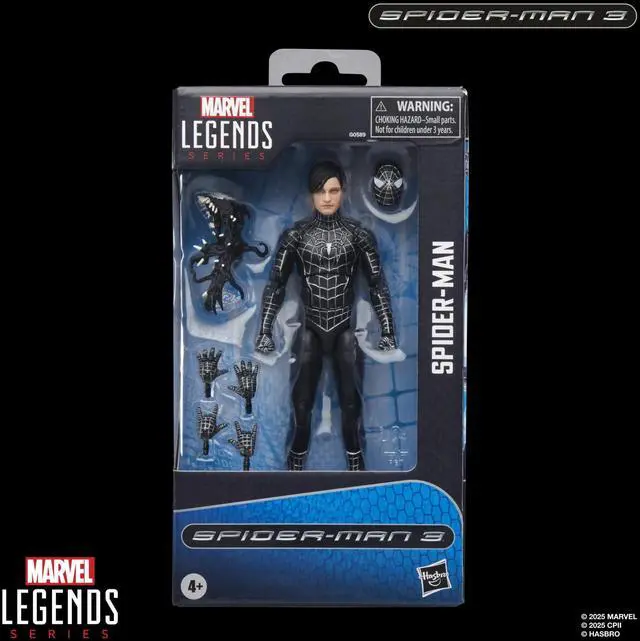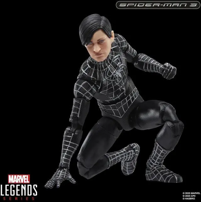 Bring the excitement and wonder of the Marvel Universe to your collection with Hasbro Marvel Legends Spider-Man action figure! This collectible 6-inch scale Marvel figure is detailed to look like the character's appearance in the Spider-Man 3 film. Spider-Man figure is fully articulated with premium design and poseable head, arms, and legs, featuring iconic black Spidey suit look inspired by the movie. Marvel action figure set comes with 6 accessories, including set of alternate hands and unmasked Peter Parker alternate head. Hasbro Marvel action figures' 6 inch scale make them great for displaying in fans' collections.