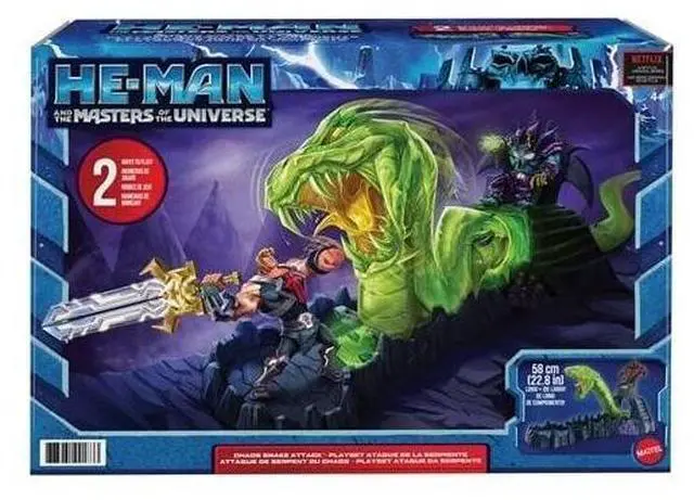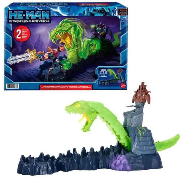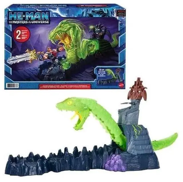 Inspired by the animated series, He-Man and The Masters of the Universe, set includes throne room, moveable battle platform and controllable giant Havoc Serpent. Strike the serpent enough times and the throne ejects!