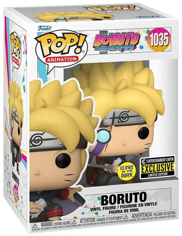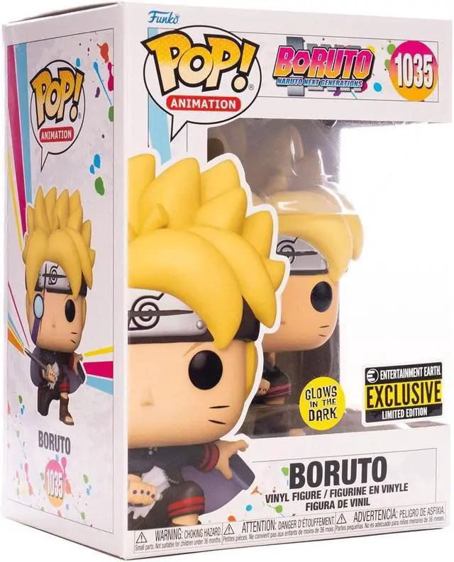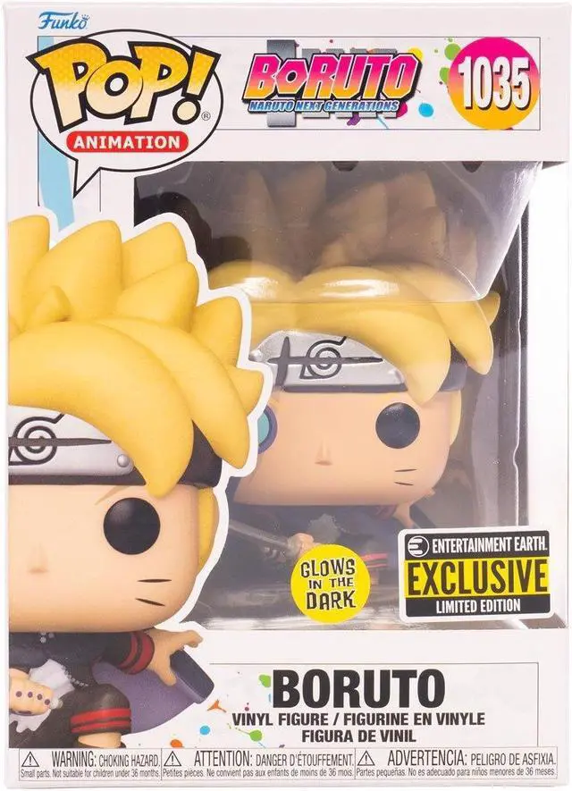 Boruto: Naruto Next Generations anime series is ready for action and powering up. Plus, in this exciting limited edition exclusive, he boasts glow-in-the-dark features that make him stand out in your collection! The Boruto with Marks Glow-in-the-Dark Pop! Vinyl Figure #1035 - Entertainment Earth Exclusive measures approximately 3 3/4-inches tall and comes packaged in a window display box. Don't miss him!