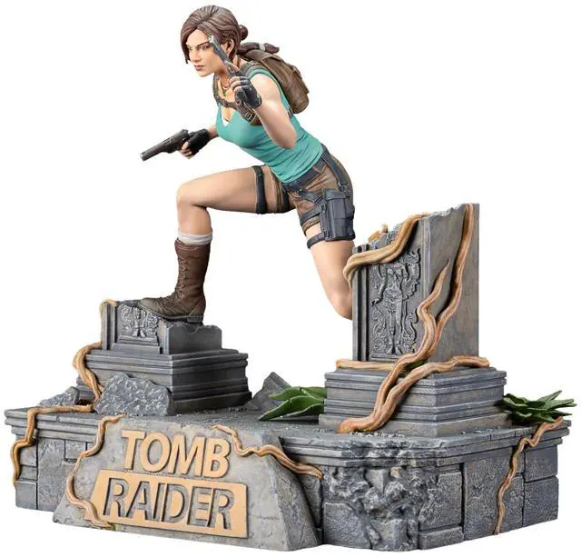 Dark Horse Comics and Crystal Dynamics are excited to present the second installment in our TOMB RAIDER line of collectibles with the new stunning Lara Croft PVC Statue! Set amidst the ruins of an ancient jungle, this meticulously crafted statue captures Lara with fierce determination and character. Standing at 9.2 inches tall, with a width of 9.4 inches and depth of 6.3 inches, this statue also features interchangeable accessories. Choose to showcase Lara with her iconic second pistol or her rugged climbing axe. Shes ready for any challenge the jungle throws her way! Pre-order your