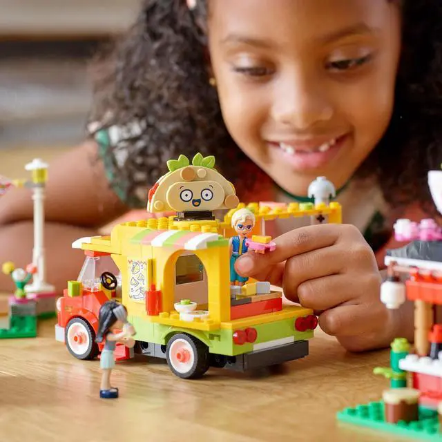 Give kids a flavor of the world with this LEGO Friends Street Food Market set, which comes with a taco truck, juice bar and sushi stand.