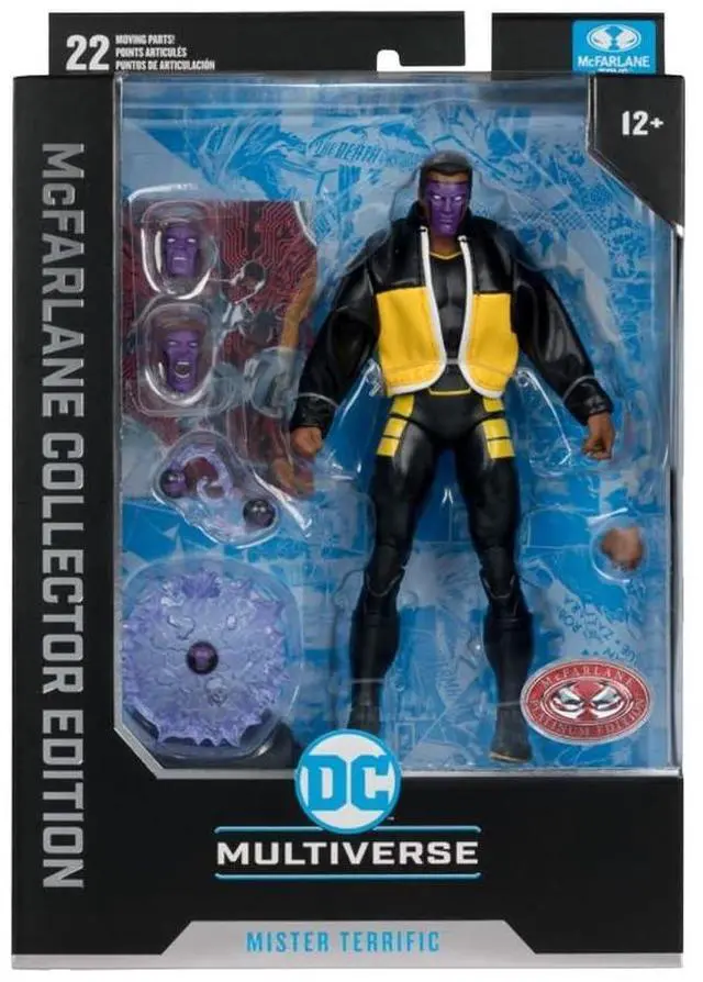 Chase edition Mr. Terrific figure from Justice Society America. 7-inch scale figure with highly detailed sculpting. Ultra articulation supports dynamic display poses. Includes character-specific accessories. Ideal centerpiece for DC Multiverse collections