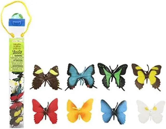 Each mini figure in this TOOBS® ranges from 1” to 3” and is carefully sculpted and finely hand painted. Packaged in a reusable acetate Toobs, the figures guarantee years of learning fun. These highly detailed butterflies from around the world flaunt their vibrantly colored wings. This Toobs includes a Red Glider, Green Swallowtail, Orange Barred Sulphur, White Angled Sulphur, Evenus regalis, Anaea clytemnestra and a Papilio garleppi. Educational information in five languages is available. All figures are 100% guaranteed and phthalate and lead free to ensure children’s safety. Suggested ages 3 and up.