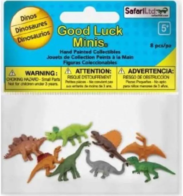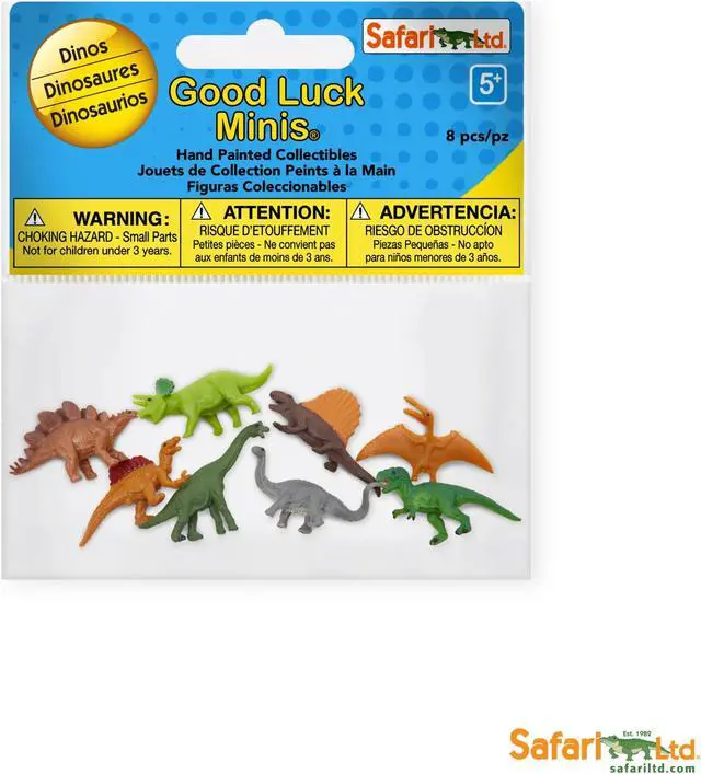 This Fun Pack is like a Dinosaur zoo! Good Luck Minis are tiny hand-painted replicas. These soft figures are professionally sculpted and feature the realistic colors and lively detail you expect in our larger Safari Ltd replicas. The Fun Pack includes eight figures: Spinosaurus, Pterosaur, Apatosaurus, Stegosaurus, Brachiosaurus, Dimetrodon, Triceratops, and Tyrannosaurus rex.