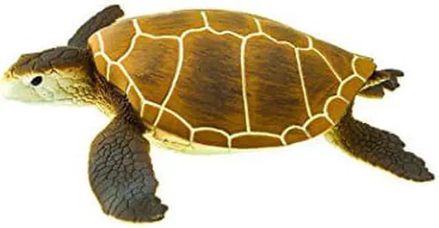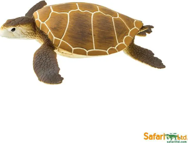 Interestingly, the green sea turtle actually earned its name from the color of its fat rather than its physical appearance. One of the largest sea turtles, it can be found in oceans worldwide and has been sighted near every continent except for Europe and Antarctica. Although the green sea turtle is endangered, its important role in its ecosystem cannot be overstated. Green sea turtles are one of few creatures that eat and actually help maintain the health of sea grass, which is a necessary breeding ground for many marine animals. Like all Safari Ltd products, this figurine has been individually hand painted, features quality construction from phthalate and lead-free materials, and includes an educational hangtag in 5 languages. Realistic, educational, and fun, this figurine is suitable for a range of interests, including collectors, enthusiasts, teachers, and kids. Admire it on a shelf, use it in the classroom, or simply enjoy playing with it. 4 inches long and 4.25 inches wide, both dimensions of this figurine are about the size of the length of a credit card. Despite its name, the green sea turtle s physical appearance is mostly made up of dark brown and olive colors.