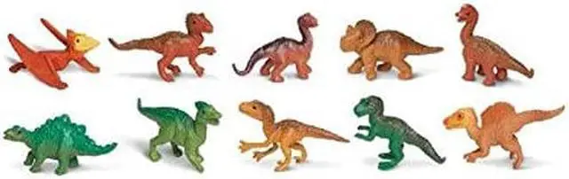 The dino babies Bulk Bag includes the baby: Pertadon, Allosaurus, Apatosaurus, Triceratops, Brachiosaurus, Stegosaurus, Parasaurolophus, Velociraptor, T-rex and Spinosaurus._x000D_