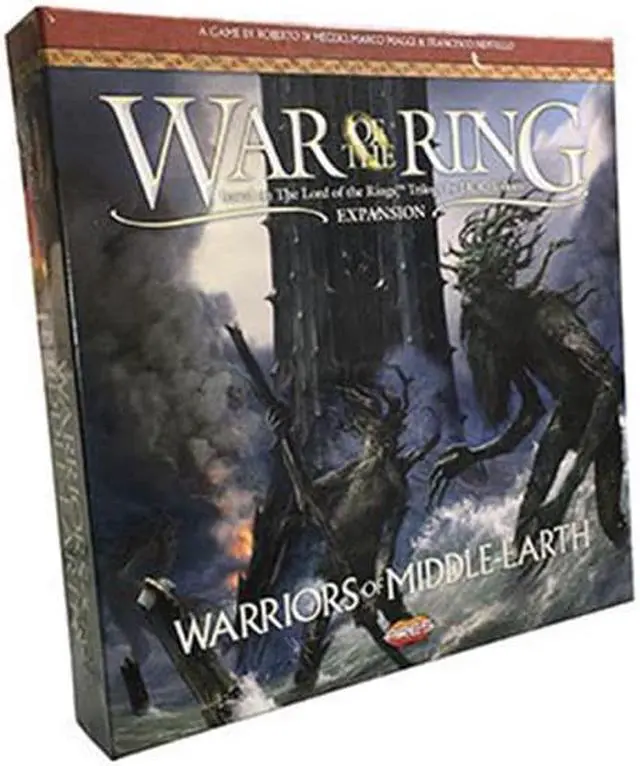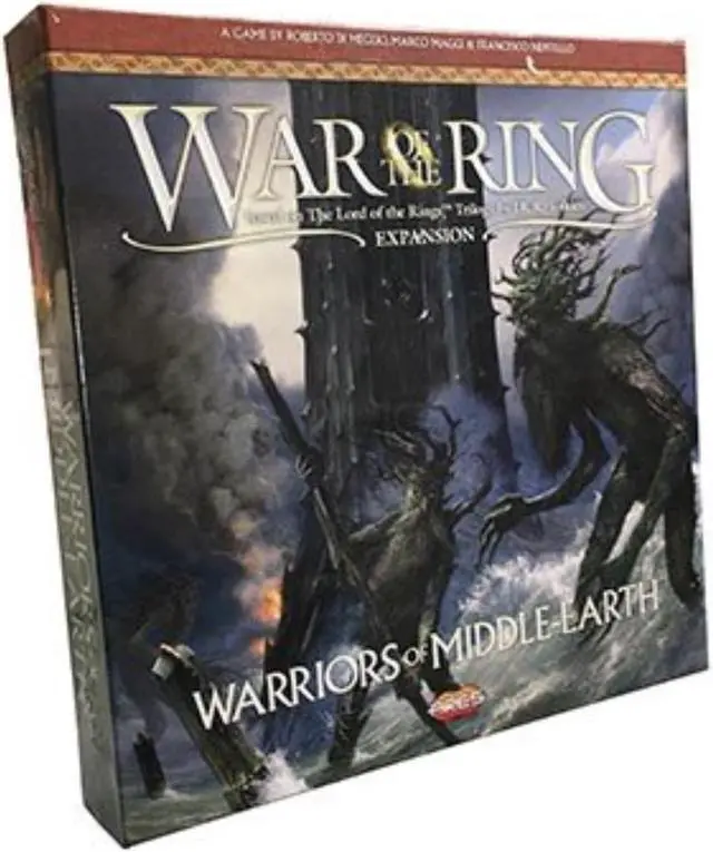 Warriors of Middle-Earth, the new expansion for War of the Ring Second Edition, brings a whole new level of strategy to all players of the award-winning Lord of the Rings boardgame, with many fresh and exciting gameplay possibilities to explore. Many folks and creatures played a part in the War of the Ring: the mysterious Ents, the Dead Men of Dunharrow, the Great Eagles of the Misty Mountains, the Corsairs of Umbar, the Wild Hillmen of Dunland, the Giant Spiders of Mirkwood and Mordor. Warriors of Middle-Earth gives new depth to the deeds of these combatants previously featured in the game only as Event cards - now making them an essential part of the game, complete with unique figures and special abilities. As the Free Peoples player, you can now muster the Ents to free Rohan, or even send them to protect Lorien or Gondor; storm the lands of the South leading an Army of the Dead; fly with the Eagles to the rescue of the Fellowship or to relieve a siege. As the Shadow player, you can sail the dark ships of the Corsairs along the river Anduin or the coasts of the Western Sea; lead a horde of Dunlendings to take Edoras or put the Shire to the torch; let giant Spiders crawl out of the darkest recesses of Middle-earth to terrify your enemies... With new special dice, two decks of Faction Events, and new figures, Warriors of Middle-Earth greatly expands the options of both Free Peoples and Shadow, and makes every War of the Ring Second Edition battle even more challenging and fun.