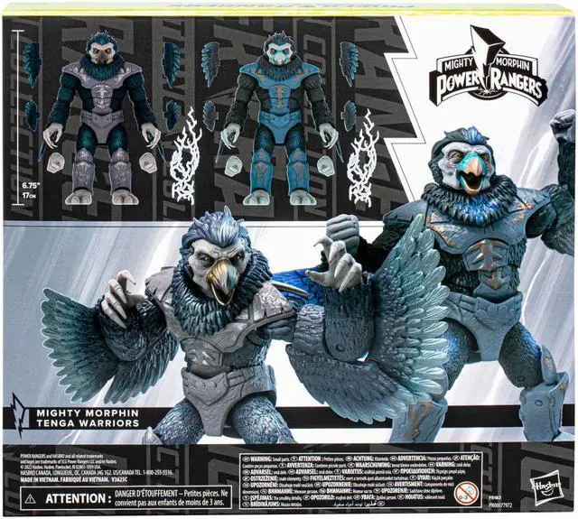 This Mighty Morphin Tenga Warriors Pack includes multiple character-inspired accessories, including swappable fist hands, blast effect pieces, and additional wing accessories for both figures.