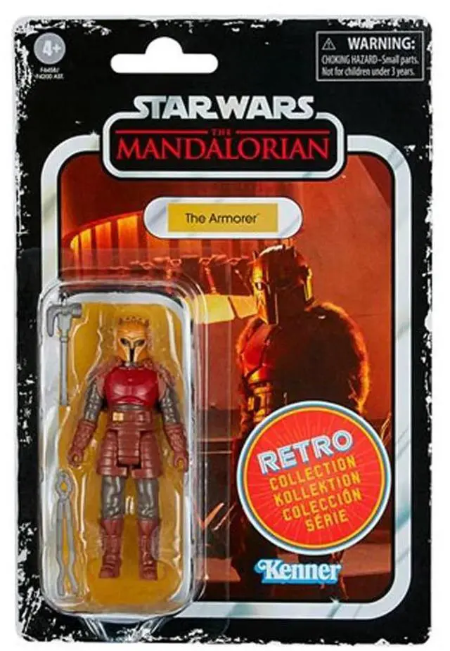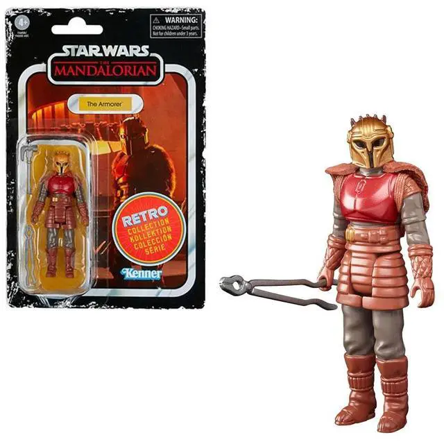 Go old school with the Star Wars The Retro Collection The Armorer 3 3/4-Inch Action Figure! The Armorer plays a vital role in keeping the culture of the Mandalorians alive. She forges beskar armor in the ancient tradition of her people. 3 3/4-inch scale plastic figure includes hammer and tongs as seen in The Mandalorian series. AGES 4 AND UP