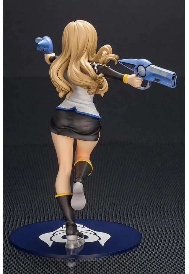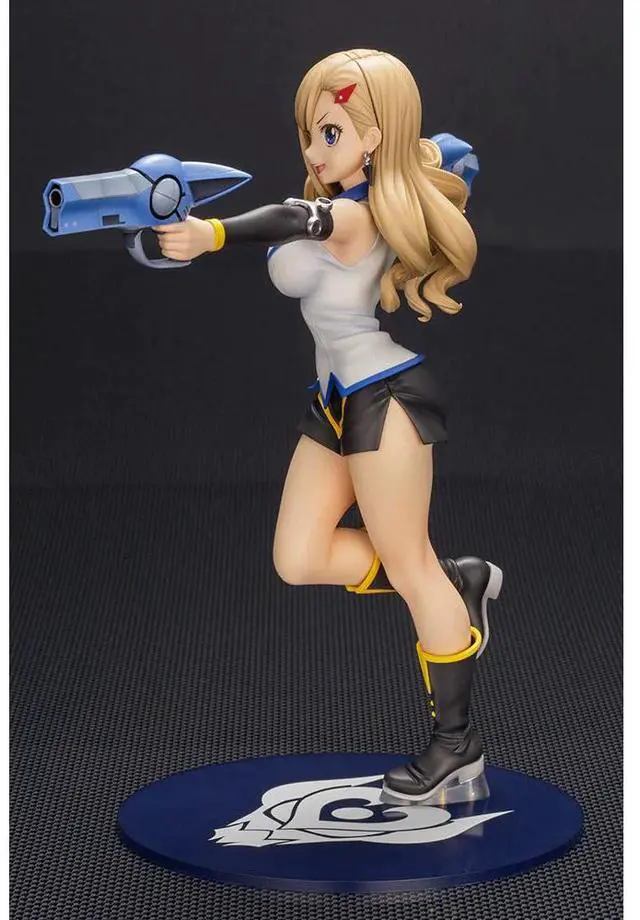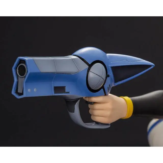 From the hit anime, the B-Cuber from EDENS ZERO, Rebecca Bluegarden is joining the ARTFX J line! The statue's pose is based on the key visual for the TV anime. Rebecca's sidekick Happy, transformed into the Happy Blasters, is recreated in perfect detail. Rebecca's robust physique is also faithfully sculpted. From the necklace to the earrings, each part of the statue is delicately detailed. The base is printed with "Edens Mark" that matches the Shiki Granbel statue (sold separately).