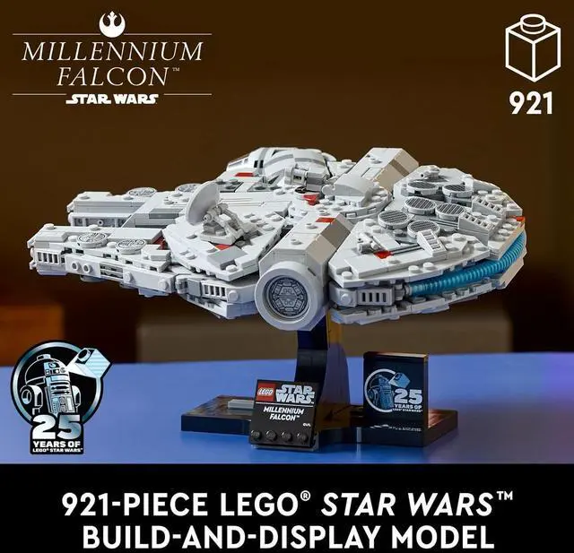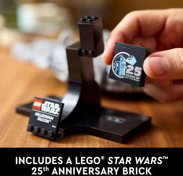 Celebrate 25 years of LEGO Star Wars with the iconic Millennium Falcon from Star Wars: A New Hope. Set 75375 delivers a detailed, display-focused build that captures the legendary starship in a compact, collector-friendly format. Designed for fans, collectors, and builders, this set includes a display stand and a special 25th Anniversary LEGO Star Wars element, making it a standout piece for any collection.