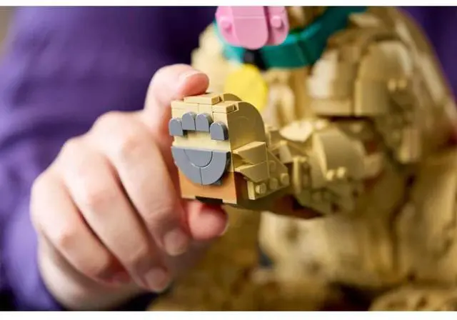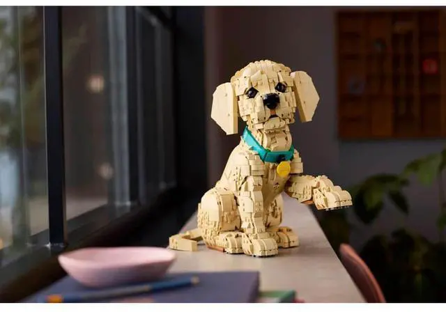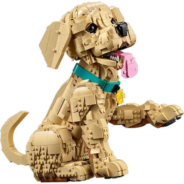 - POSABLE FIGURE Craft a detailed LEGO® interpretation of a golden retriever puppy with a colorful collar and medallion and movable limbs for creating dynamic poses