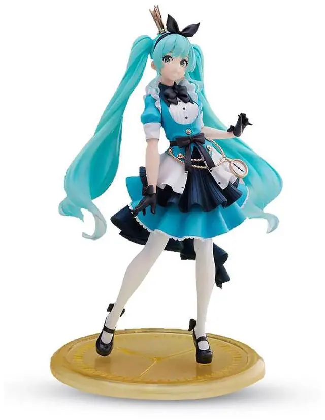 This adorable figure showcases Hatsune Miku in her Alice-inspired attire, complete with a charming blue and white dress, white pocket watch, and bow details. The Princess Alice version captures the essence of Miku?s whimsical and detailed design. Made by Taito, this figure stands at 8.27 inches and is highly detailed, though it is non-articulated. It is the perfect addition to any Hatsune Miku or Vocaloid fan?s collection.
