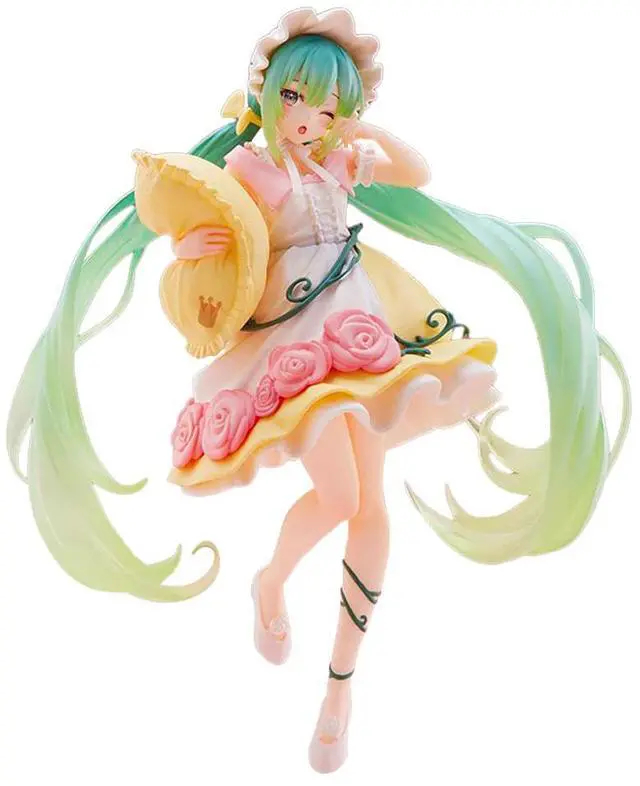 Introducing a new figure in the Hatsune Miku Wonderland line, Sleeping Beauty! Miku looks ready to sleep for a while in her gown featuring briar and roses like the fairytale character?s namesake. This is sure to be a wonderful addition to any Miku fan?s collection.