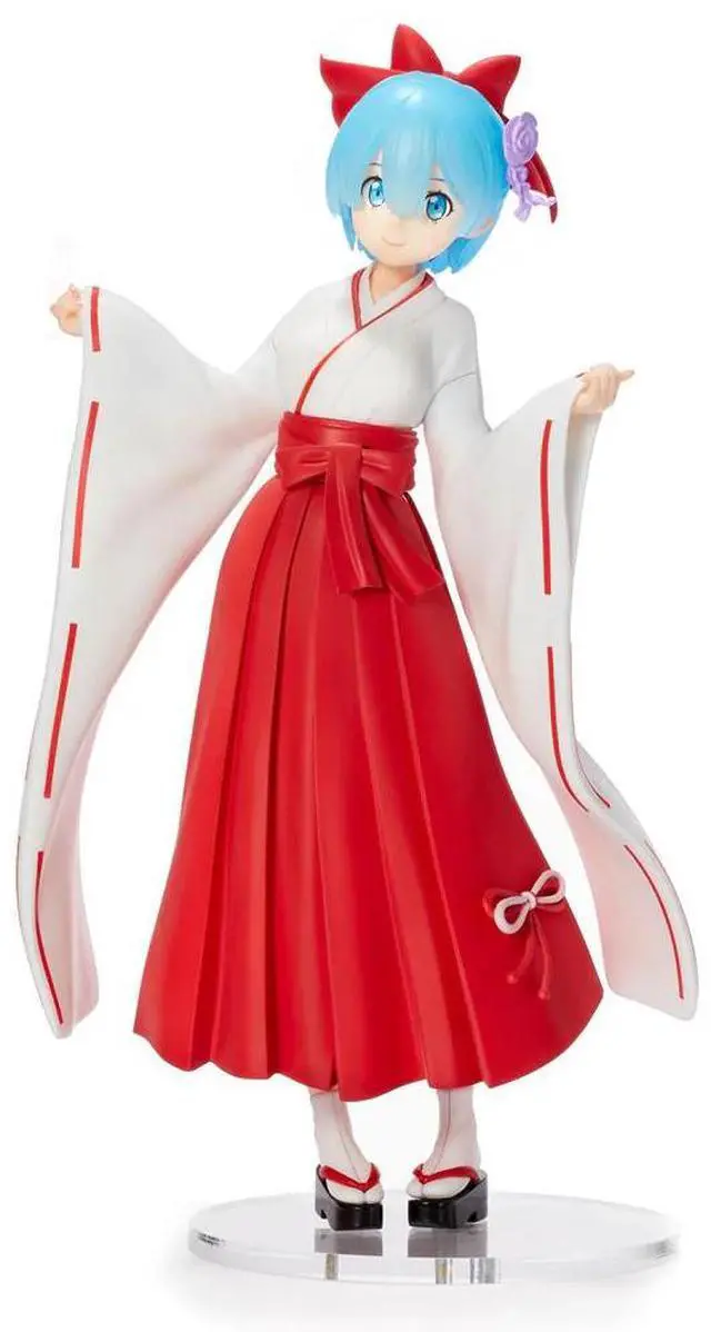 From Re:Zero Starting Life in Another World, this Rem figure stands about 9 inches tall and is dressed in a shrine maiden outfit.