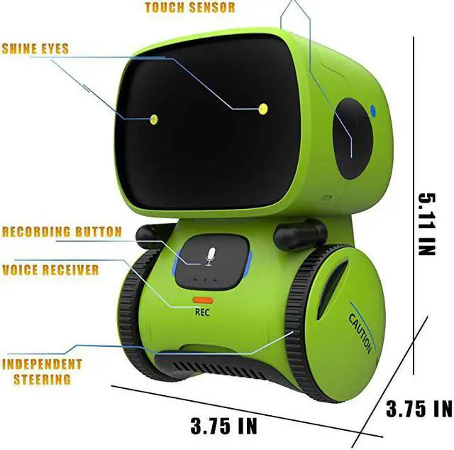 ***** ********** ***** ***** *****Best Quality Guranteed. ***** *****TOUCH SENSOR FUNCTION The robot will go forward, go back, turn left, turn right and 360-degree spin when you touch the sensor button (head & two ears). Super easy to operate and enjoy! ***** *****INTERACTIVE WITH THE ROBOTWhen the robot is in voice controlled mode, you can speak to the robot like Come here, Can you dance, Are you happy, the robot will response to you according to your instruction and do actions. The robot will be power off if you say goodbye sleep to it, you should press the talking recording button in the chest to turn it on again, otherwise the robot will not work.