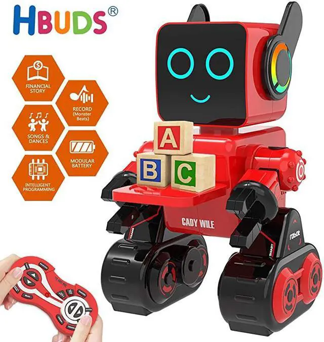 Color: Red CADY WILE KIDS ROBOT - UNLEASH THE CURIOSITY OF YOUR KIDS! During the growing years of children, it is important to provide robot toys that allow them to think and learn while they play. Robots will tap different areas in their brain and improve their creativity, computational thinking, motor skills as well as soft and cognitive skills, with that in mind, we have developed a remote-control robot which keeps the playtime of your kids fresh, active and fun and channel them into active learning! Meet CADY WILE KIDS TOY ROBOT From the moment your kids take him out of his box, he will become their best life companion and take them to a new world of learning and playing. It is made from the highest quality materials with no dangerous parts, so you do have to think twice to choose our RC robot! Our smart robot popularizes some of the financial tips when you touch the head and comes with a coin bank to improve your kids saving habits. Also, with fully fledged remote control, the robot will be the personal delivery assistant of your kids.