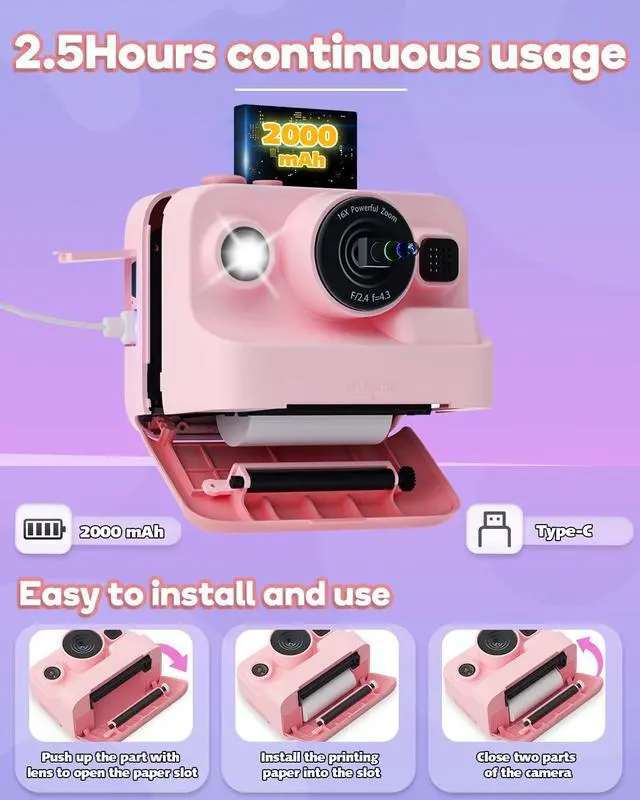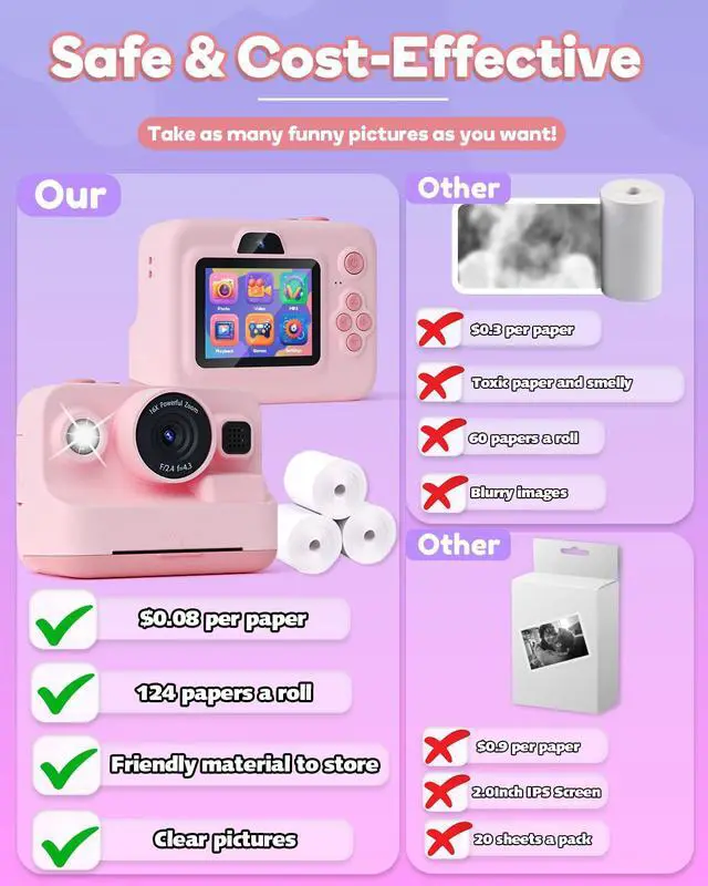 Printing mode can be selected according to needs.There are 3 volumes of printing paper.Single paper size: about 3.8'' x 2.2''(L x W)