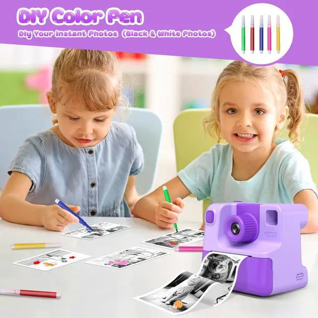 Kids Camera Instant Print, Christams Birthday Gifts for Girls Boys 5 6 7 8 9 10 Year Old, FHD Kids Toddler Digital Video Cameras,Selfie Cameras with 3 Rolls BPA-Free BPS-Free Print Paper & 32G Card