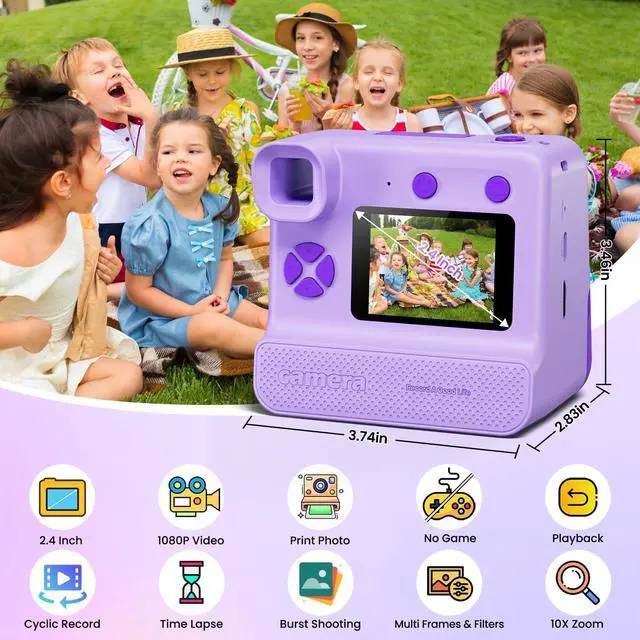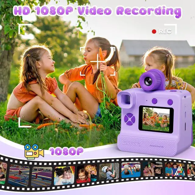 [Multiple Functions Kids Instant Camera] This Kids Digital Camera with 2.0-in HD screen,180 degree rotating camera, 1080p video recording, 10X digital zoom, cyclic recording and other helpful settings. With photo capture, video recording, playback, self-timer, date setting, recording etc.Selfies, photography, drawing, music, videos and games are kids' favorite forms of entertainment. We designed this camera with a 180° lens flip for kids who love to take selfies, and it makes taking selfies a whole lot easier