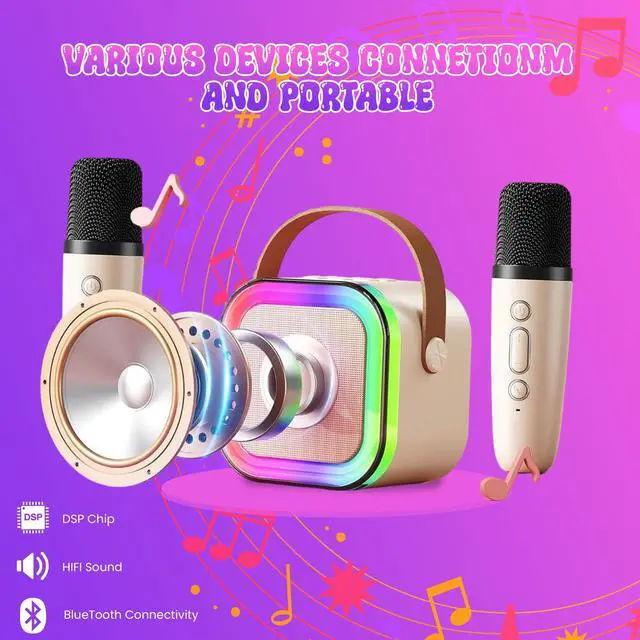 Portable Karaoke Machine: Compact and lightweight, perfect for kids to carry and enjoy anywhere.