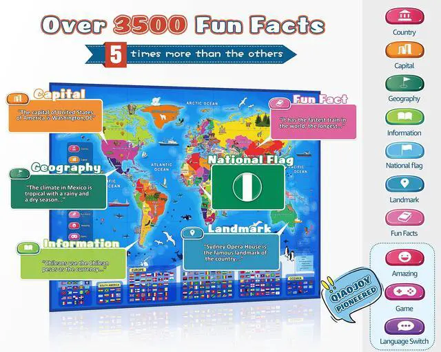 Amazing! Kids can learn about 195 countries on the world map.