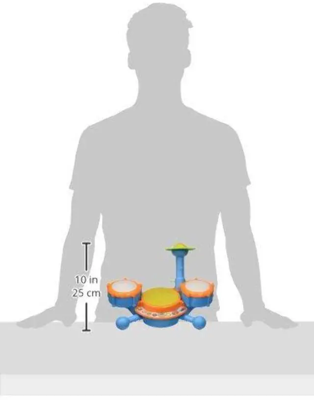 This drum set for kids comes with a pair of drumsticks that can be used to tap the four different electronic drums. Your child can drum freestyle or play along to nine pre-set melodies in a variety of musical styles. Or for more structured play, they can follow the lights on the drums as they hear about letters and numbers. With four ways to play and a variety of fun sounds, your child will love learning to the music! Includes two drumsticks.