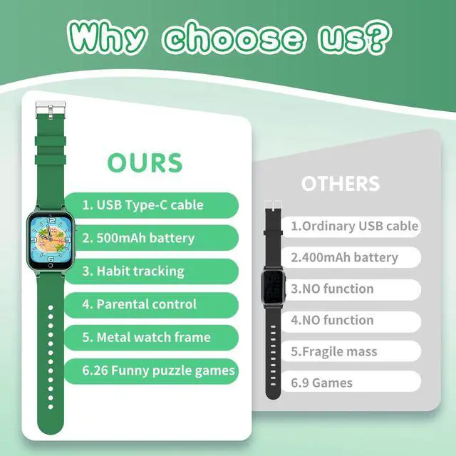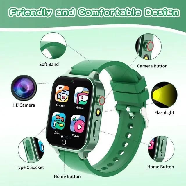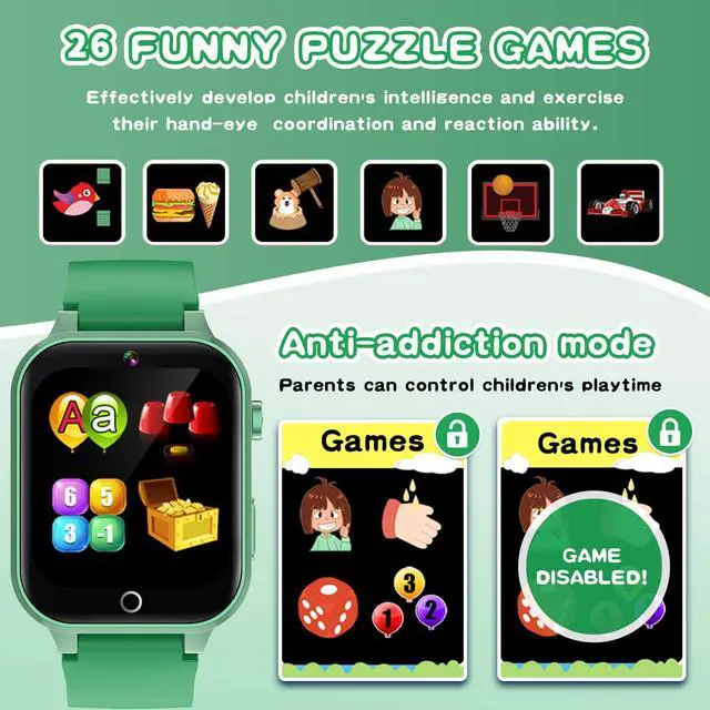- Kids smart watch with selfie-cam, MP3 player, voice recorder, habit tracking, games, pedometer, flashlight, alarm, stopwatch, calculator, theme, screensaver select, parental control, silent profile, time format, volume, etc. Which can bring convenience, fun and unprecedented new experience to children's lives.