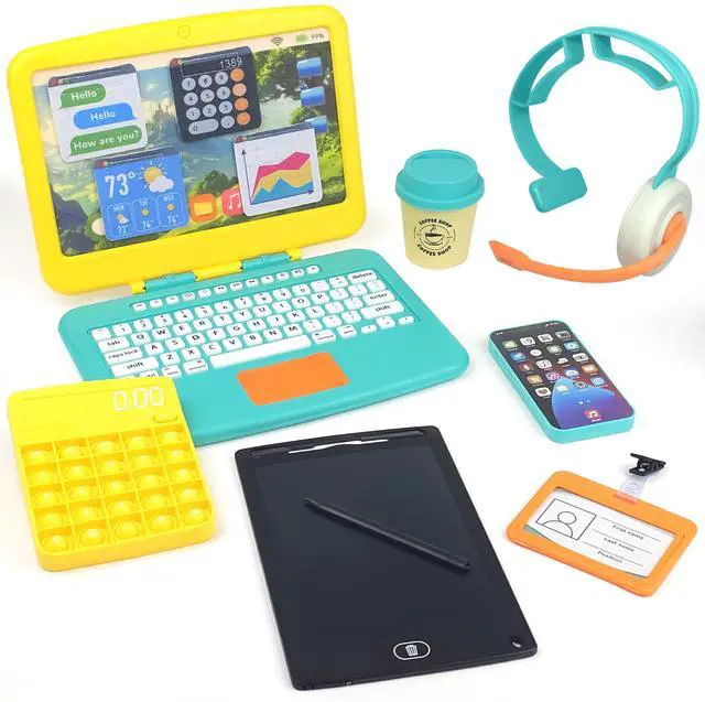 The toy laptop for kids transforms learning into play! Children practice focus, problem-solving, and communication skills with this pretend computer — part of a realistic pretend play school set. Perfect for dramatic play, teacher toys, and early learning development.