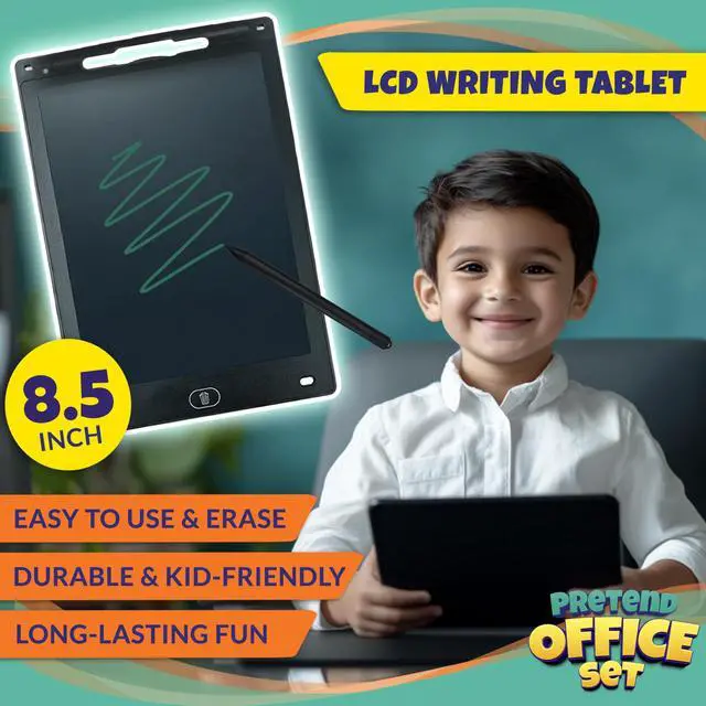 Includes an LCD writing tablet for doodles, letters, and learning numbers. Durable and easy to erase — the perfect addition to pretend play sets and school pretend play. Encourages artistic expression and creativity in every young imaginative learner.