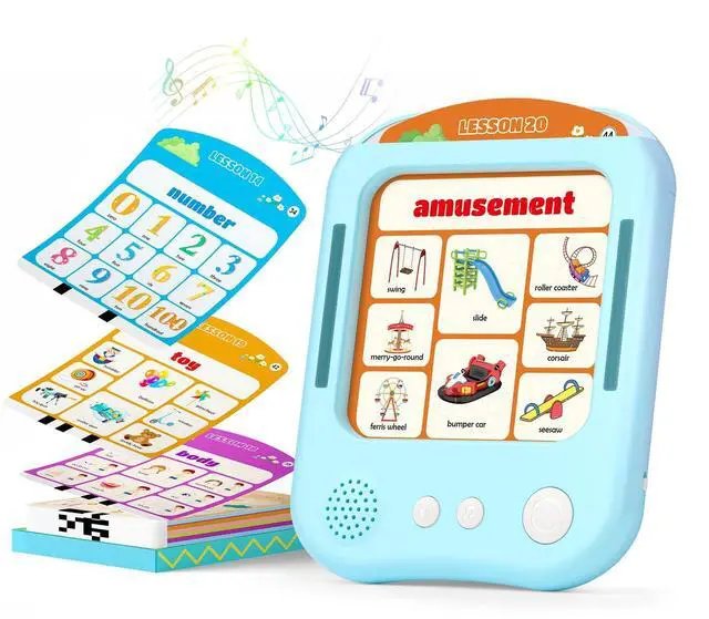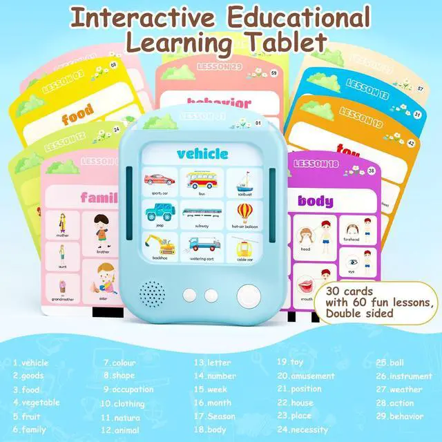 Interactive Educational Learning Tablet Toy for Kids,Screen-Free Phonics Learning Toy with 30 Flash Cards for Alphabets, Numbers, Words, Animals, Learn to Read for Boys Girls 3-5 Years Old, Blue