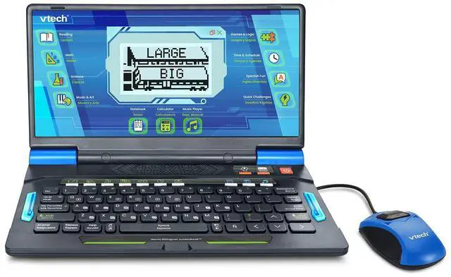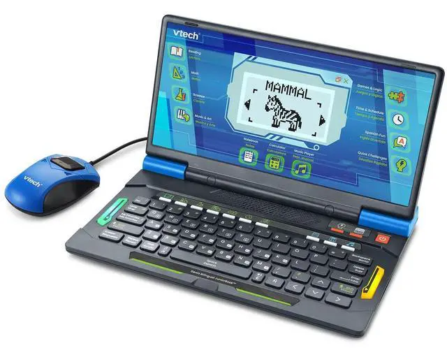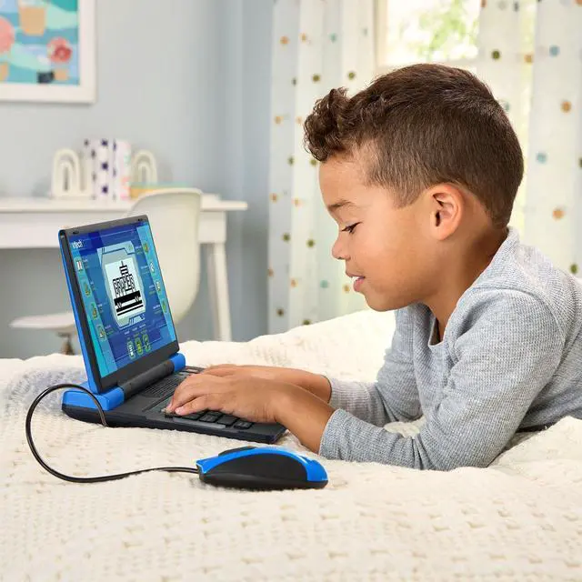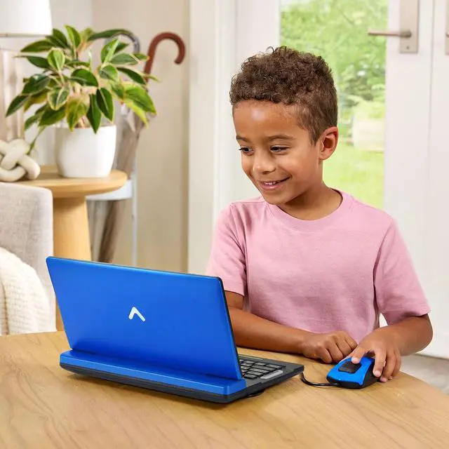 Designed to look and feel like a grown-up computer, this first laptop for kids helps build basic computer skills using a full-size QWERTY keyboard and cursor controller