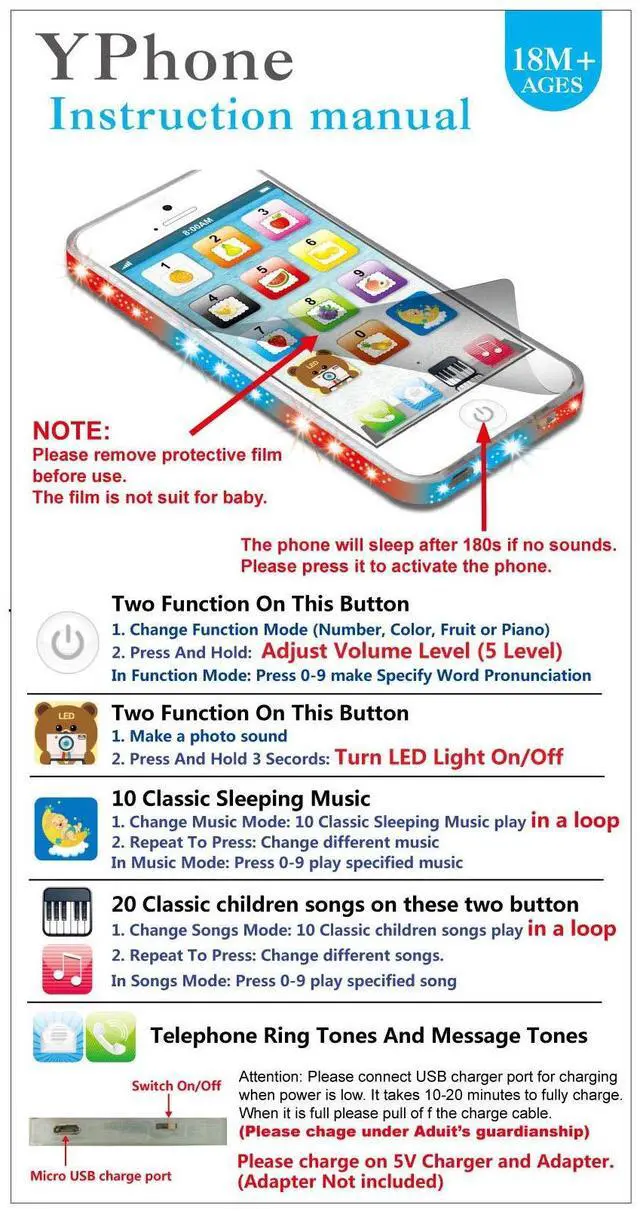 | Item Type Name | YPhone Kids Learning Toy Play Cell Phone Black with USB Recharable |