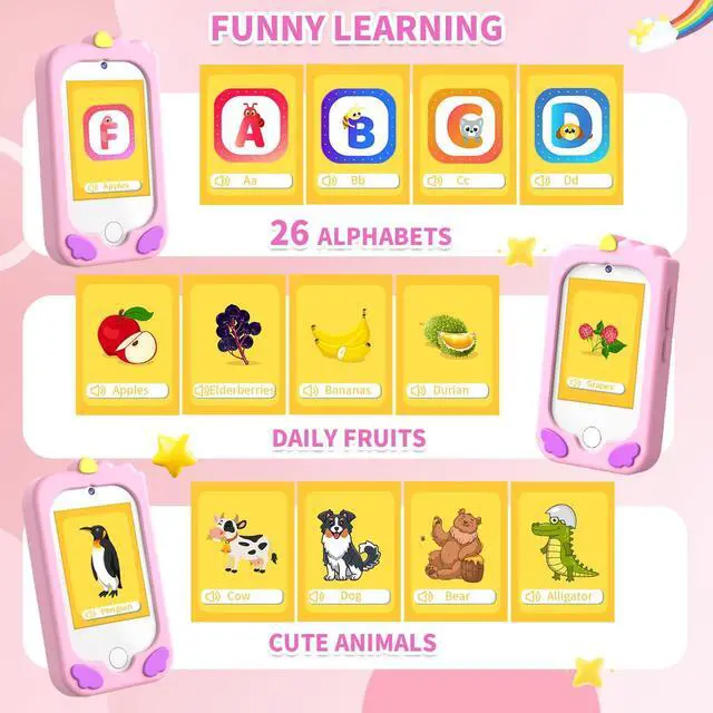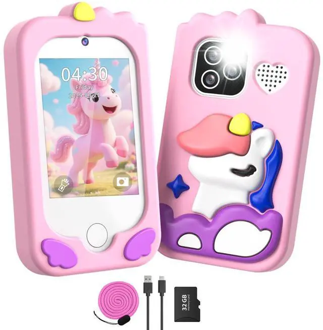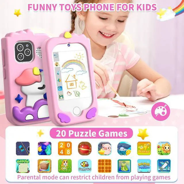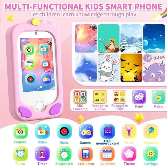 Multifunctional Kids Pretend Phone Designed for little hands, this toy phone features a 2.8-inch IPS touchscreen with ultra-responsive operation, just like a real smartphone. Equipped with 22 fun and educational functionskids can take photos, record videos, play music, and enjoy interactive games.