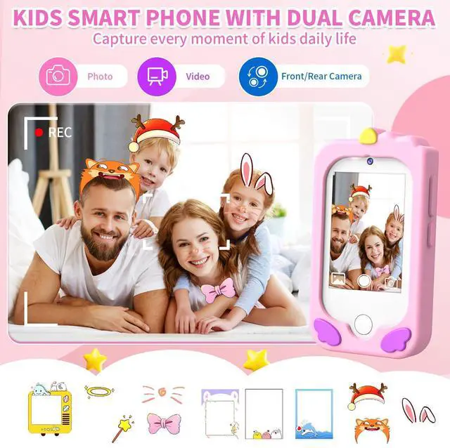 Dual Cameras for Creative Fun This kids smart phone toy includes both front and rear cameras for selfies and photography. With 10 fun stickers, 7 filters, and burst mode, little ones can capture and customize their favorite momentsjust like adults!