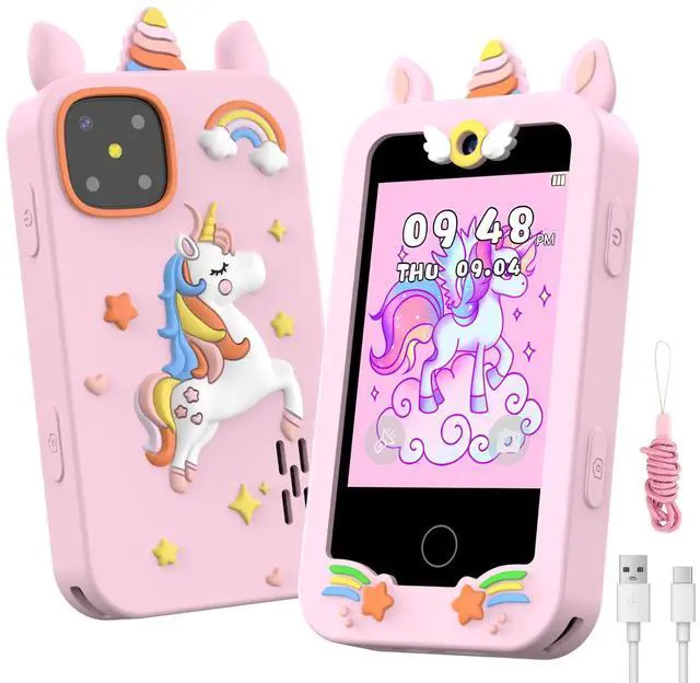 Kids Smart Phone for Girls, Christmas Birthday Gifts for Girls Age 3-10 Mini Toddler Cell Phone for Kids, Toddler Girl Learning Toy Phone with Dual Camera, Game, Music Player