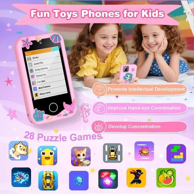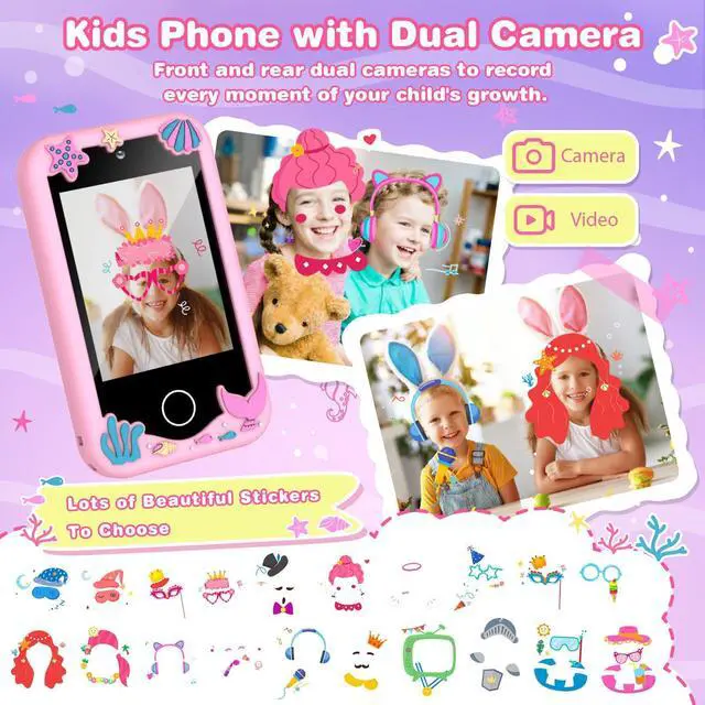 Interactive 2.8" Touchscreen & Dual Camera - This kids' smart phone features a 2.8-inch touchscreen that's easy for little hands to navigate. With dual cameras, kids can capture moments and make videos with ease, fostering creativity and self-expression.