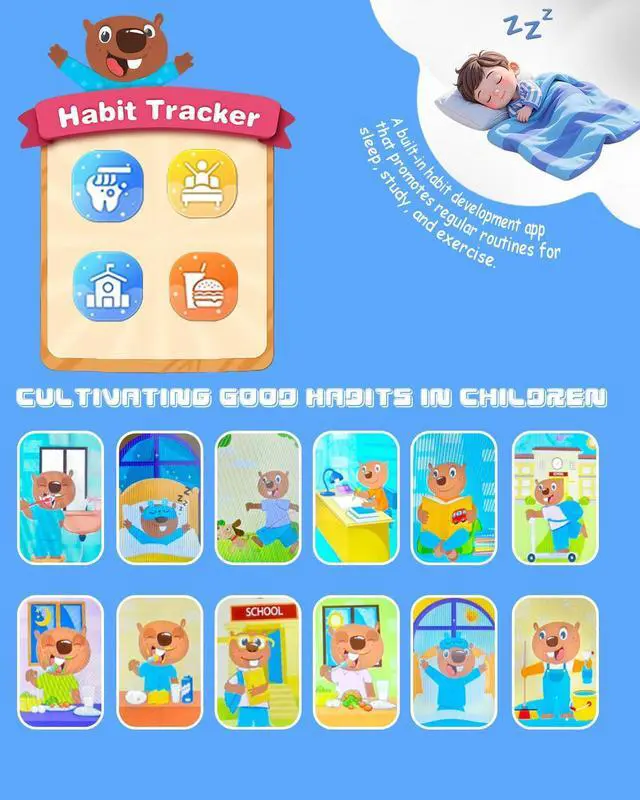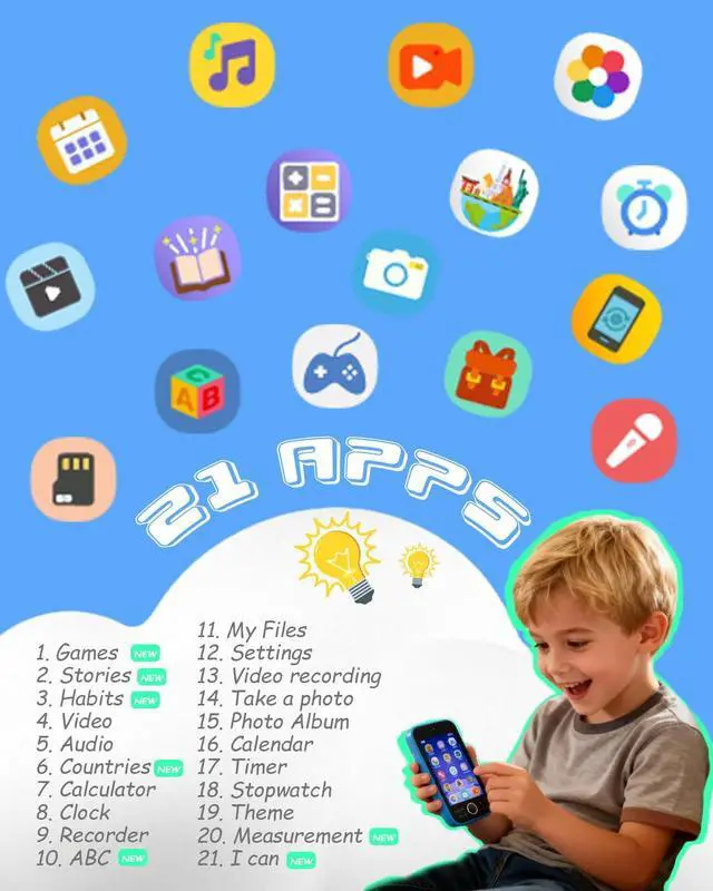 Upgrade Learning Phone for 3+ Years Olds Kids: Lizzbey toddler phone installed learning A-Z letter, ABC learning is easy and fun by combining letter pronunciation and associated animal sounds. 10 fables stories, 23 iconic buildings from different countries to enrich children's knowledge and inspire automatic exploration of learning. 12 habit tracker, time alarm management, can help maintain child's good daily habits more easily and develop a awareness of time in their early age