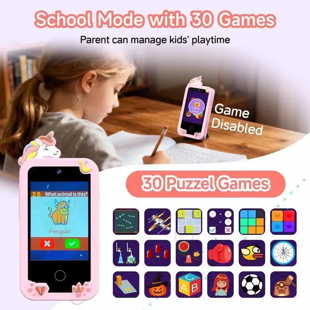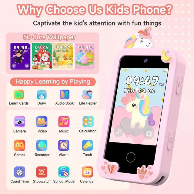 The kids smart phone has many interactive learn cards, drawing tools, and educational games that make learning enjoyable, which helps to exercise kids' thinking and logic abilities, boosting early learning.