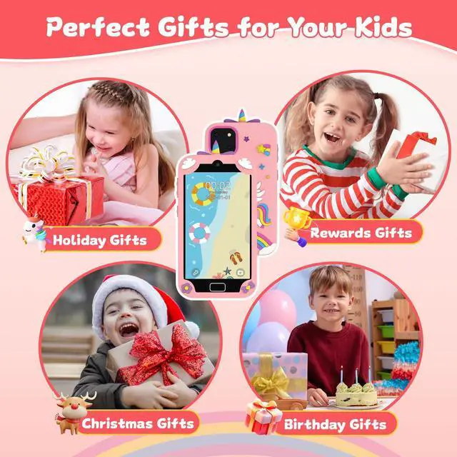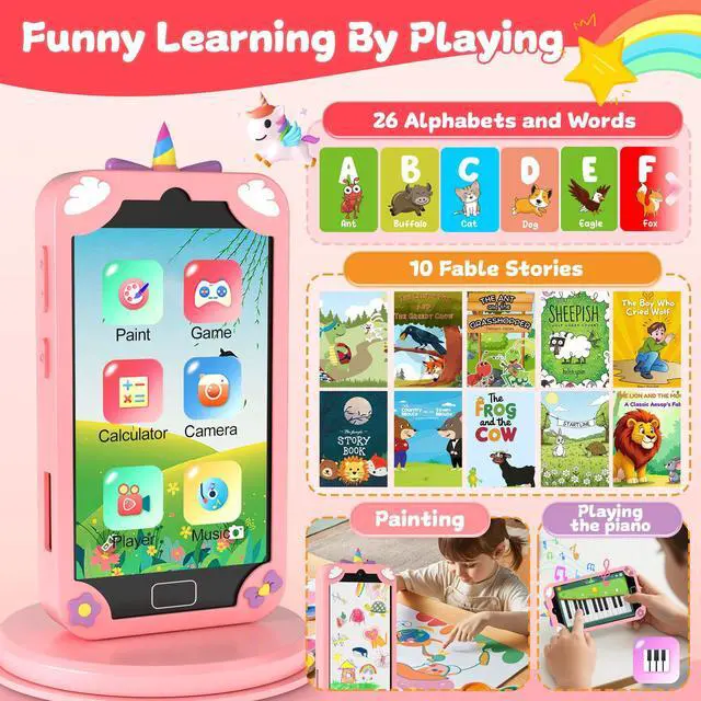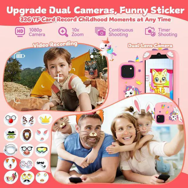 • Dual Cameras & Playful Stickers. With front and rear cameras on this kids smart phone, kids can capture pictures and videos of their day. Adding silly stickers to their creations makes it even more fun and is a great way for them to express themselves.The 3.97-inch responsive touchscreen makes starting and stopping recordings a breeze. With excellent photo and video quality, it unlocks a world of visual storytelling for your child