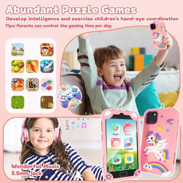 • Endless Entertainment in Their Pocket: Games, Video, Music & Stories. Fun is always ready! This kids phone comes pre-loaded with multiple educational games for instant play. It also functions as an MP3 player with a built-in speaker and includes a large 32GB memory card, allowing you to load hundreds of songs and audiobooks for stories on the go, perfect for road trips or quiet time. Supports multiple languages including English and Spanish