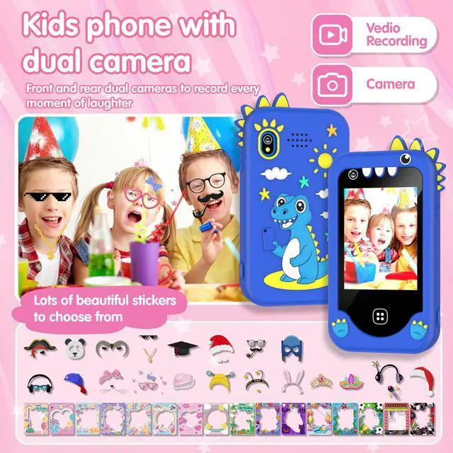 • Dual Cameras + 36 Stickers: Ours kids smart phone features front and rear dual cameras, supporting photo-taking, video-recording,and quick switching to selfie mode, satisfying kids'desire to mimic adults. As the perfect kids smart phone for girls and boys,it comes built-in with 36 cute stickers(including small animals, holiday elements,etc.)to add playfulness to photos, easily freezing precious moments.This engaging pretend phone also includes 30 personalized wallpapers (in styles like cartoon,nature,etc.), allowing kids to freely switch home screens