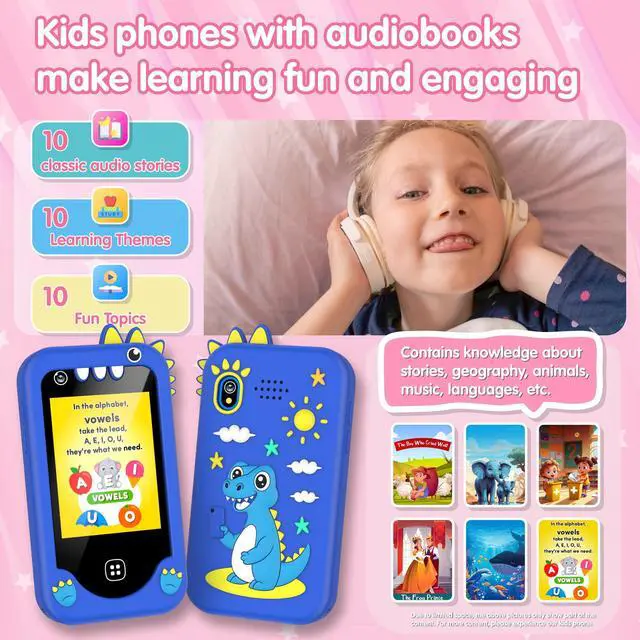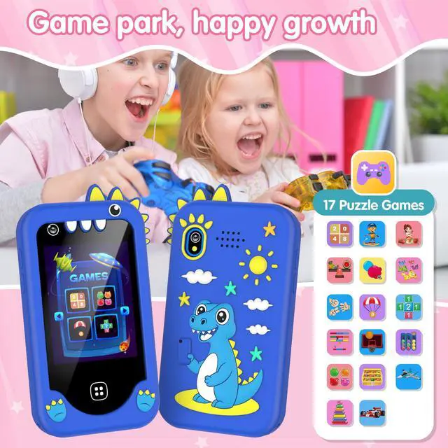 • Learning & Play Kid Phone for Ages 3-8: Ours phone for kids blends education and fun with 17 puzzle games, 30 stories across classic and thematic learning, plus knowledge modules (US geography, animals, food etc.) and life tips.Our Toddler Phone also features 13 habit tracking alarms to help kids build routines saving parents from constant reminders