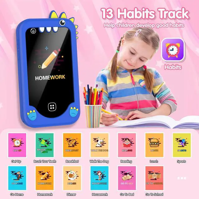 Kids Smart Toy Phone Blue 2.8" Touchscreen with Dual Cameras 17 Puzzle Games 13 Habit Tracking Alarms Christmas/Birthday Gift for 3-8 Year Old Boys Girls Travel Educational Toy